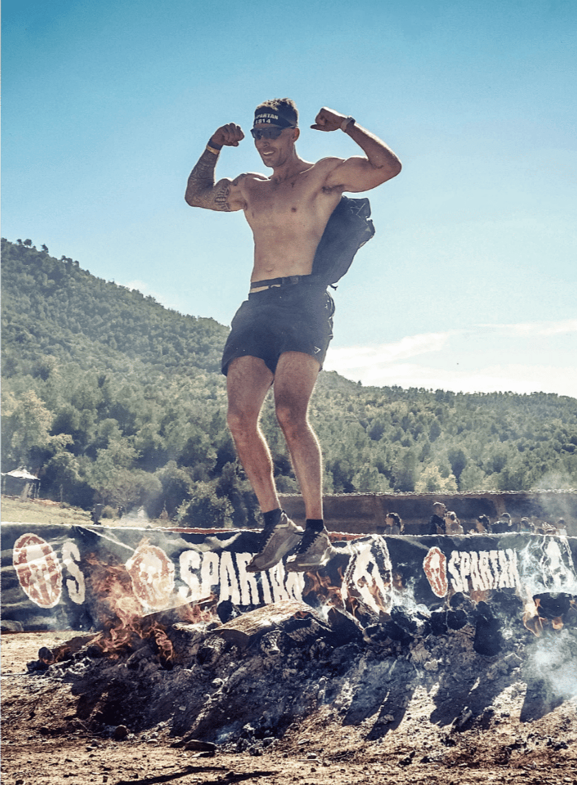 (Even after 22 km and 30 obstacles, I still had the power in my legs to produce this finish line picture)